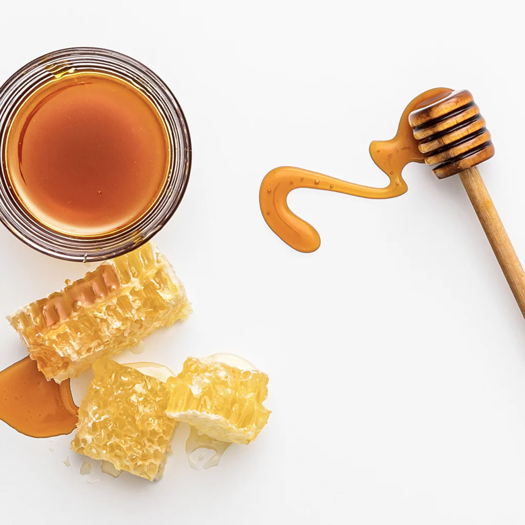Miel de Manuka : surnommé “l’or liquide” de Nouvelle-Zélande, il capte l’humidité, améliore la brillance et accélère la réparation des zones sèches ou abîmées.