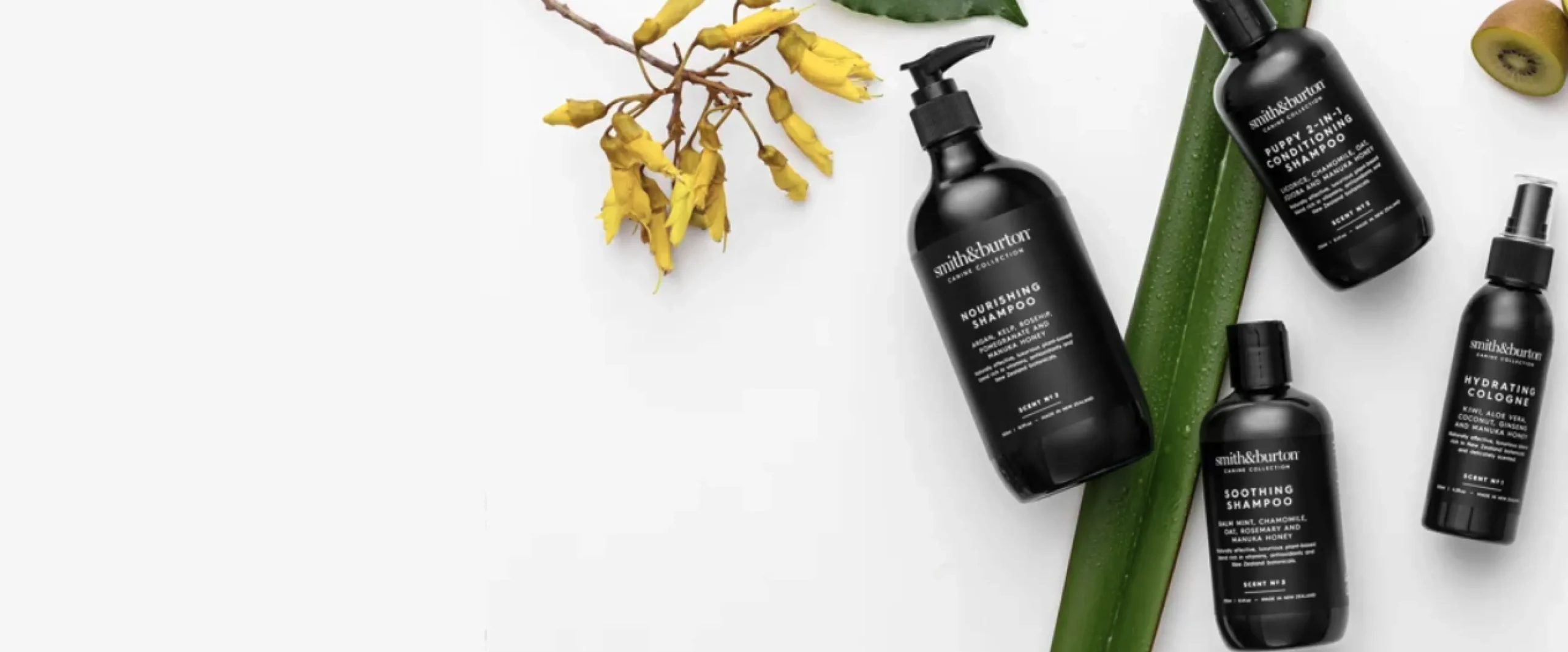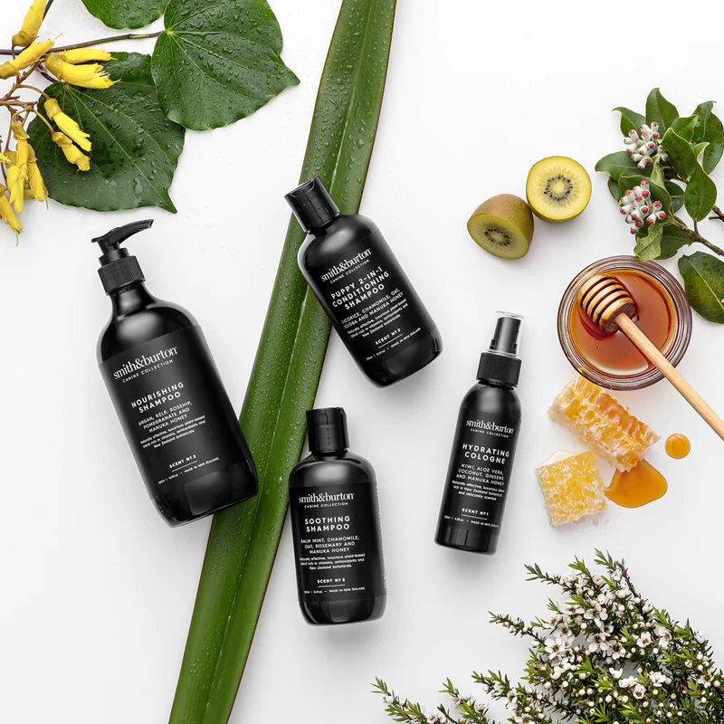 Chaque shampoing pour chien naturel Smith&Burton, spray démêlant ou baume est formulé à partir d’ingrédients 100 % naturels et soigneusement sélectionnés pour nourrir, protéger et sublimer la peau et le pelage.